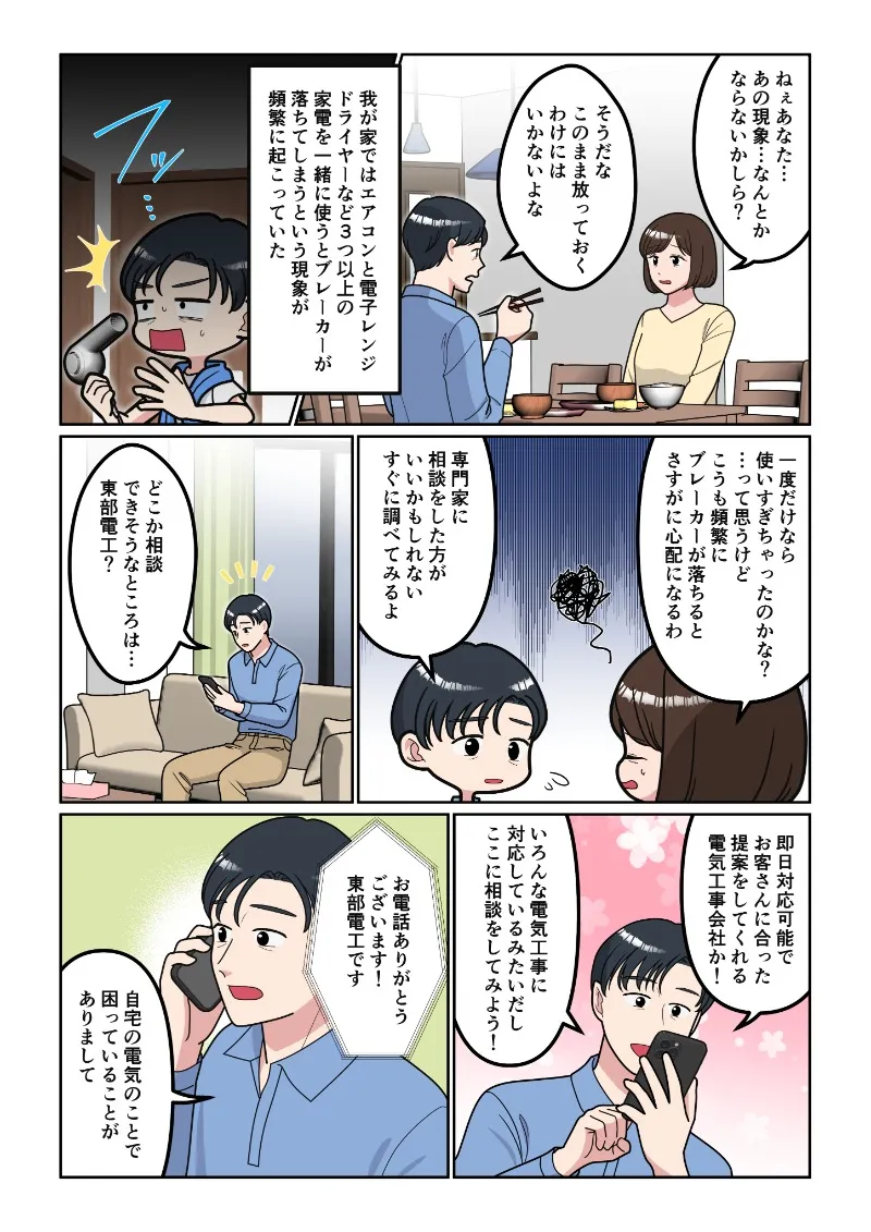 奥さん「一度だけなら使いすぎちゃったのかな?…って思うけど、こうも頻繁にブレーカーが落ちるとさすがに心配になるわ」
