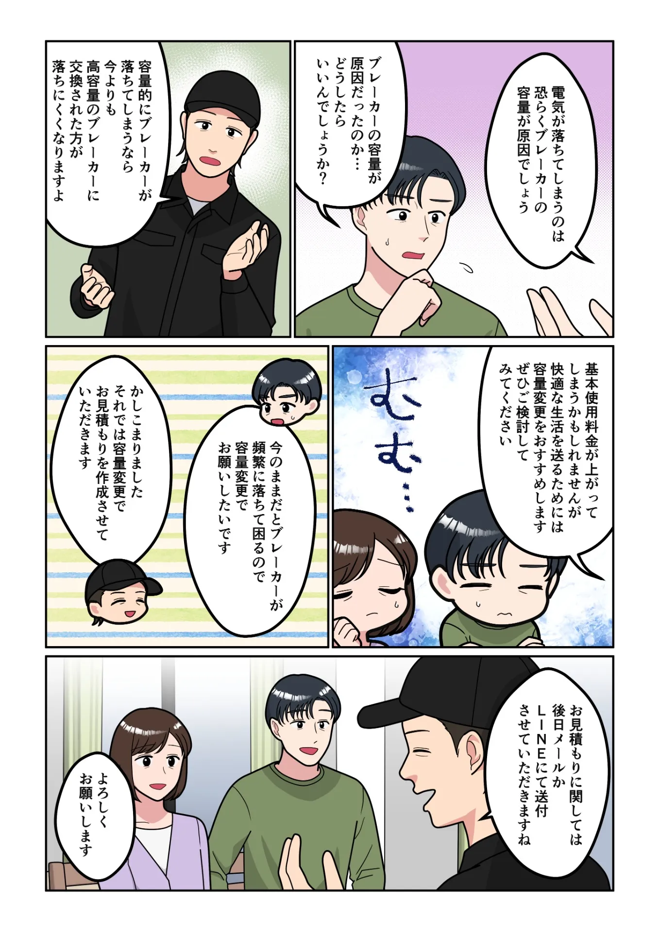 旦那「今のままだとブレーカーが頻繁に落ちて困るので、容量変更でお願いしたいです」
